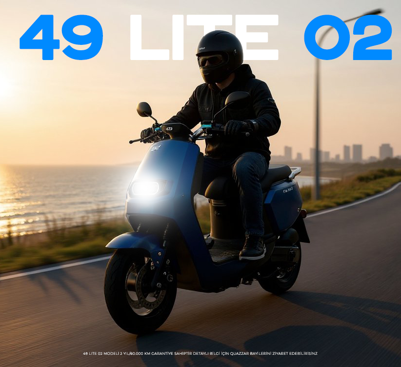 Quazzar 49 Lite 02, şehir içi ulaşımın yeni nesil çözümü olarak tasarlandı. Kompakt yapısı, elektrikli motor gücü ve ekonomik performansıyla, kentsel mobiliteyi daha sürdürülebilir, çevreci ve pratik hâle getiriyor.